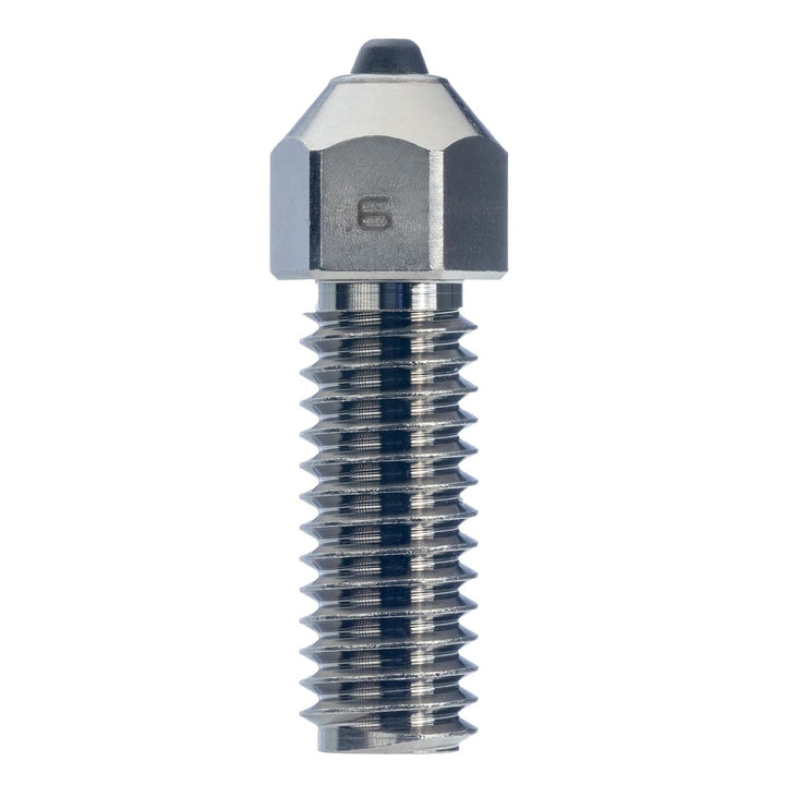 Die DiamondBack Düsen basieren auf einer soliden Diamantspitze, die die Präzision beim 3D-Druck verbessert. Die Spitze ist keine Diamantbeschichtung, sondern ein solider Diamantsubstrat aus polykrystallinem Diamant. Diamant ist nicht nur das härteste Material der Welt, sondern bietet auch eine erstklassige Wärmeleitfähigkeit. Dies ermöglicht eine effiziente Wärmeübertragung vom Hotend durch die Düse in das Filament und sorgt so für präziseres Drucken und bessere Schichthaftung bei jedem Druck!