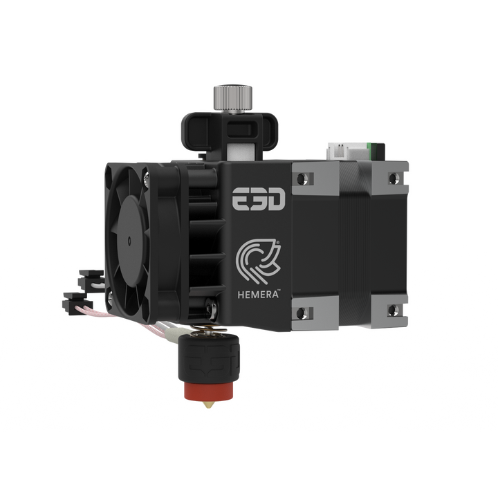 Hemera kombiniert Extruder und HotEnd, wodurch es weniger Übergänge als die meisten Extrusionssysteme auf dem Markt hat. Ein enger Filamentweg sorgt für hervorragende Leistung mit schwer zu druckenden Materialien, wie flexiblen Filamenten. Selbst mit den weichsten flexiblen Materialien können Sie drucken, ohne dass es zu Unterextrusion oder Filamentverstopfungen kommt.