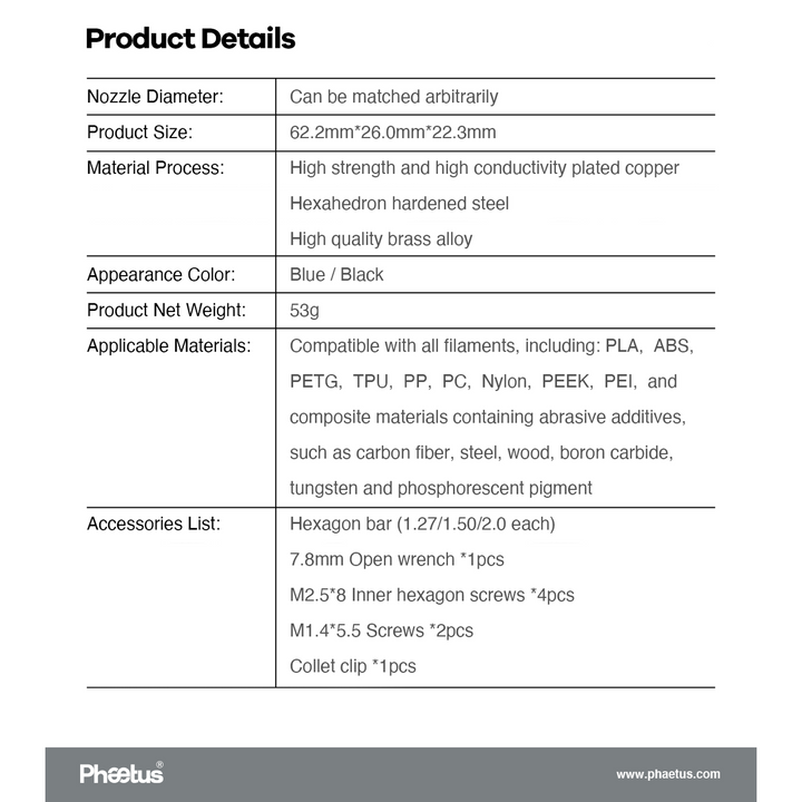 - Die Innenrauhigkeit der Düse und des Heat Breaks beträgt Ra 0,4, was eine reibungslosere Bewegung des Filaments ermöglicht und zu höher auflösenden Drucken führt.