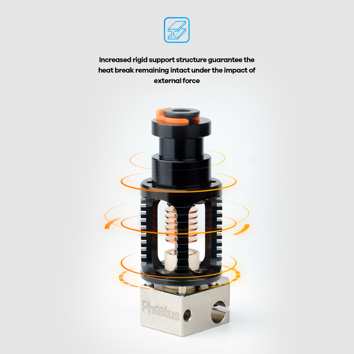 - Integrierte Rahmenstruktur erleichtert den Austausch der Düse, ohne den Heizblock greifen zu müssen.