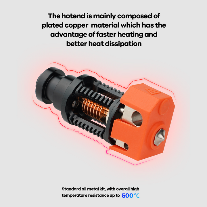- Der Hot-End besteht hauptsächlich aus Kupferlegierung, die eine schnellere Erwärmung und bessere Wärmeableitung bietet.