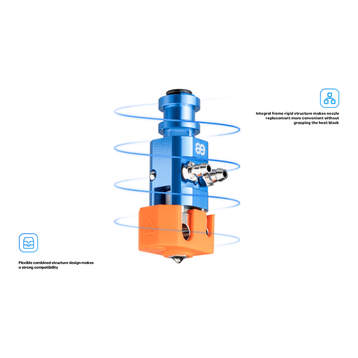 • Adoptiert eine Kühlwasserzirkulationsstruktur zur Wärmeableitung, die den Kühlkörper konstant auf Raumtemperatur hält und hervorragende Wärmeableitung bietet, um ein Verstopfen der Filamente zu verhindern