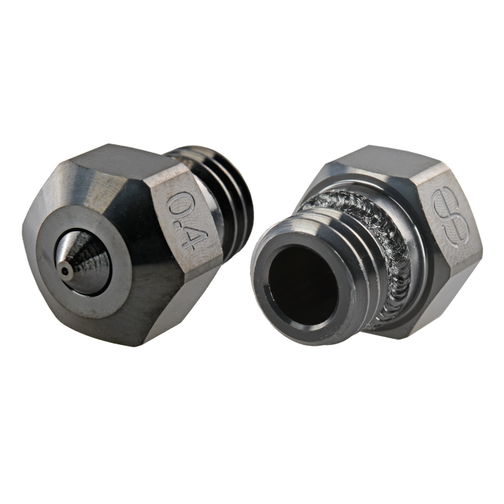 Die Verwendung von ultra-hartem Wolframkarbid (Härte > 2700Hv, bis zu 2900Hv) gewährleistet eine super Abriebfestigkeit, die langfristiges Drucken ohne Abnutzung der Düsenöffnung und der Spitze ermöglicht.