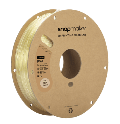 Snapmaker PVA Filament 500 g ist ein wasserlösliches Trägermaterial, das sich ideal als Stützstruktur beim 3D-Druck komplexer Geometrien eignet. Es löst sich vollständig in normalem Leitungswasser auf und ermöglicht dadurch präzise Druckergebnisse ohne mühsames Entfernen von Stützmaterialien.